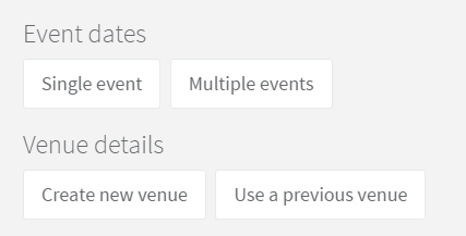 For the section “Event dates", we had 2 options organizers could choose from: an event with one start date and one end date or an event with multiple start dates and multiple end dates. When referring to the latter, our event organizers tended to call it a “series of events” or an “event series”, so I changed the option to match the language they already used.